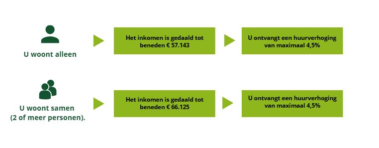 Voor de inkomensafhankelijke huurverhoging van 2025 zijn de inkomensgegevens van alle inwonende personen opgevraagd over 2023 bij de Belastingdienst opgevraagd.* Heeft u na 2023 een sterke inkomensdaling gehad en u valt in één van de onderstaande groepen, dan kunt u een verzoek tot verlaging aanvragen.