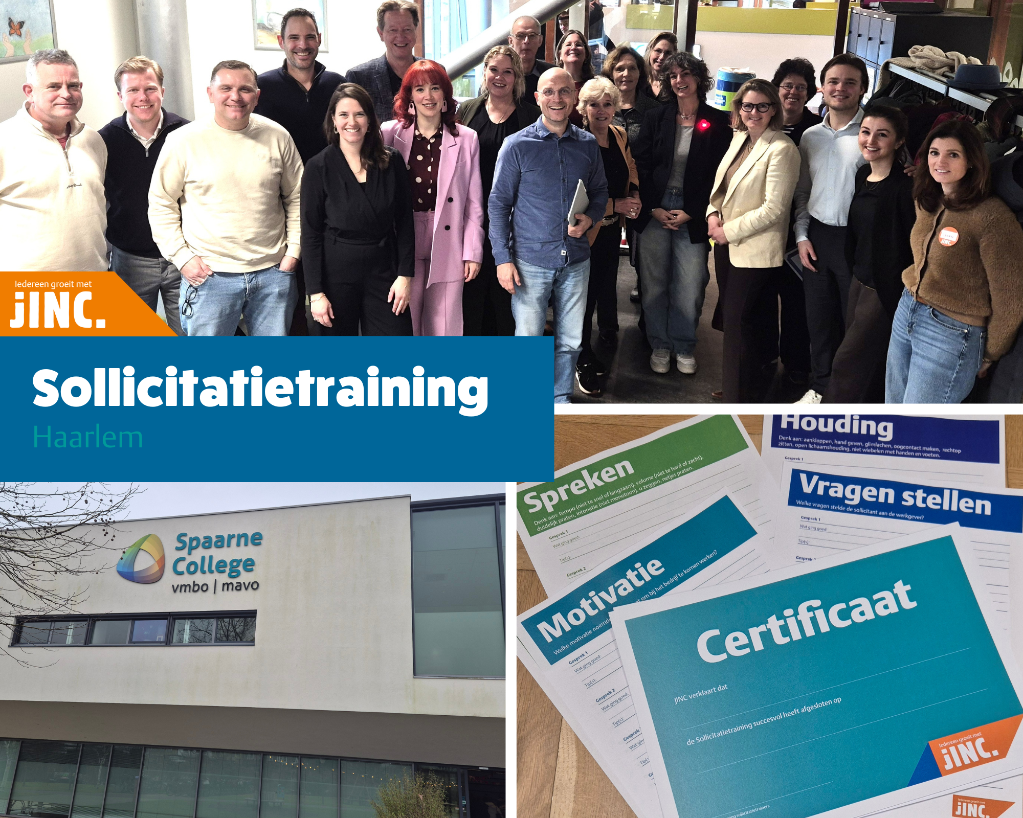 Gister gaven Jan Wim Franken (directeur-bestuurder) en Susan van Soest (HR-adviseur) een sollicitatietraining op het Spaarne College in Haarlem. JINC organiseert deze training om derdejaars vmbo-leerlingen de kunst van het solliciteren te leren. Een stevige hand geven, oogcontact maken en duidelijk spreken. Het klinkt simpel, maar je moet het maar net weten! Samen hebben Jan Wim en Susan de leerlingen tips en tricks bijgebracht en ze op weg geholpen naar een bijbaan of stageplek. Het was voor hen én voor onszelf een heel waardevolle ervaring!